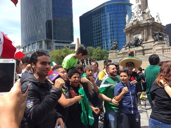 Minutos antes de terminar el histórico partido ante Alemania en el debut de Rusia 2018, algunos aficionados mexicanos ya empezaba a llegar al emblemático Ángel de la Independencia en la capital azteca.