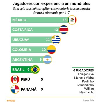 Sin embargo, el rodillo alemán que dejó una cicatriz de siete puntos en la piel de los brasileños ha causado daños colaterales. Tité tomó nota de lo ocurrido y solo se lleva a seis jugadores que vivieron la catástrofe como anfitriones. De las selecciones latinoamericanas, solo Perú y Panamá llevan menos jugadores con experiencias mundialistas.
