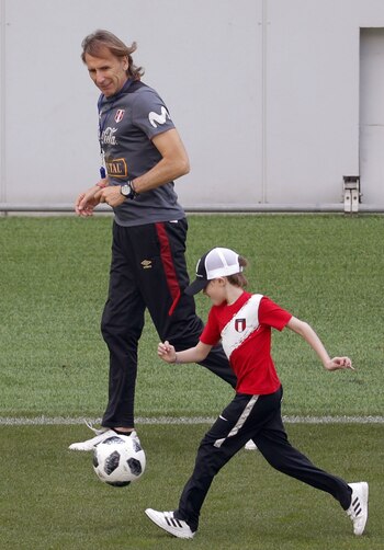 El entrenamiento de la selección de Perú en la previa del duelo ante su similar de Francia dejó una de las imágenes más tiernas en lo que va del Mundial de Rusia 2018. El entrenador del conjunto incaico, Ricardo Gareca, invitó a su nieto y lo hizo participar de los trabajos.