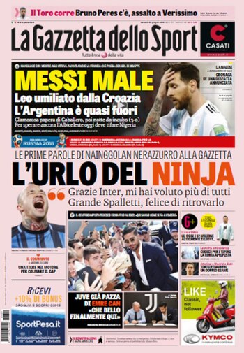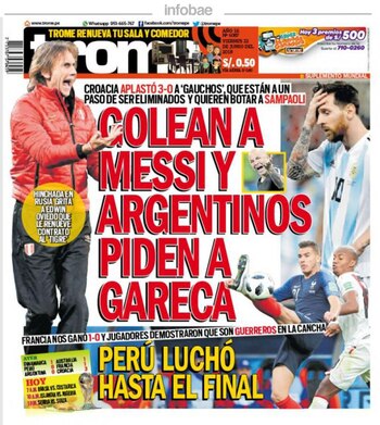 La derrota de la selección argentina a manos de Croacia por 3-0 recorrió el mundo. Las tapas de los diarios más importantes de cada país se hicieron eco de la situación que vive el conjunto de Jorge Sampaoli en el Mundial de Rusia 2018.