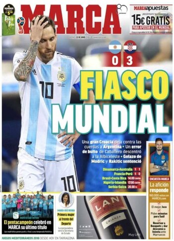 "Fiasco Mundial". "En el abismo". "Messi no se merece esta Argentina". Las tapas de los medios españoles reflejaron la situación actual que vive el equipo albiceleste, quien tiene a uno de los mejores del mundo en el plantel y no supo aprovecharlo.