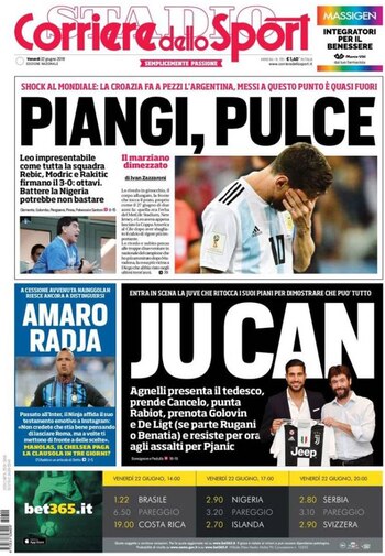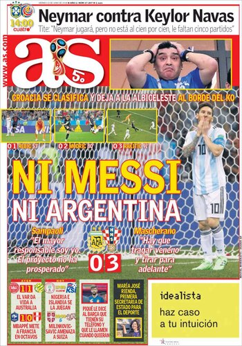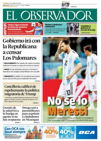 "No se lo meressi", fue el juego de palabras que utilizó el diario El Observador de Uruguay, asegurando que Argentina fue "vapuleada" por Croacia, el cual dejó comprometido al equipo de Lionel Messi de cara a los octavos de final.