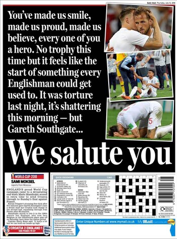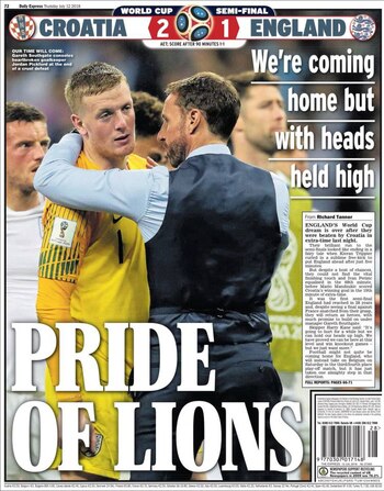 • Algunas de las tapas de la prensa de Inglaterra tras la eliminación de su seleccionado en semifinales del Mundial de Rusia 2018: