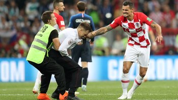 Francia ganaba 2-1 ante Croacia y se disputaban 7 minutos del complemento cuando al menos cuatro personas invadieron el campo de juego e interrumpieron el trámite del partido. A pesar del enorme operativo de seguridad desplegado en el Estadio Olímpico Luzhniki, los sujetos lograron su cometido.