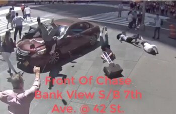 Un estremecedor video captado por las cámaras de seguridad ubicadas en los alrededores de Times Square, en Nueva York, muestra el momento en el que el auto del ex militar Richard Rojas atropelló a una multitud, lo que dejó un saldo de un muerto y 22 heridos.
