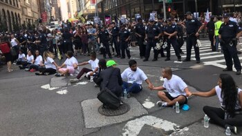 En Nueva York, un grupo de manifestantes cortó la Quinta Avenida, a metros del emblemático edificio propiedad de la familia Trump.