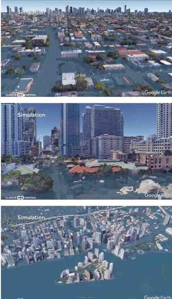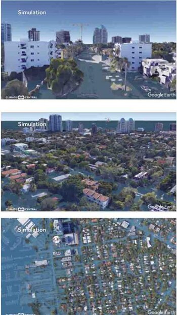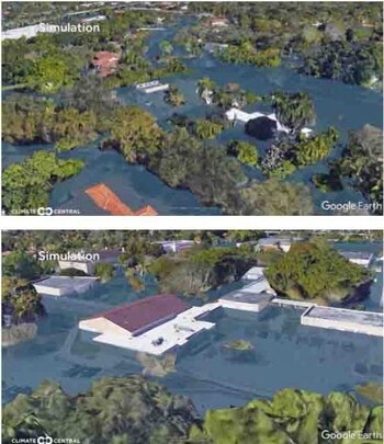 La organización utilizó la herramienta de Google Earth para simular cómo golpeará la oleada de la tormenta a los barrios de la zona sur de Florida. Dependiendo de la topografía del lugar, las inundaciones podrían ser hasta de cuatro metros de altura sobre el suelo. Lo que dejaría en riesgo a millones de casas que quedarían sumergidas.