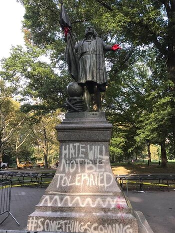 "El odio no va a tolerarse", escribieron con pintura blanca en la base de la estatua ubicada en unos de los costados del Central Park.