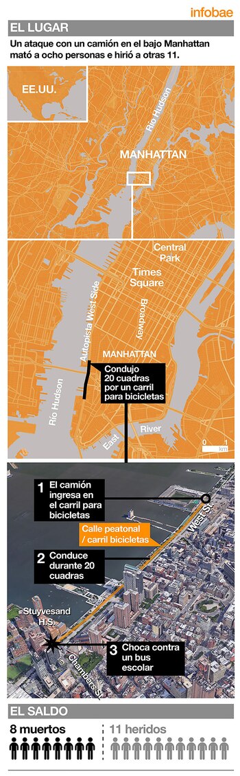 Fue el primer acto vinculado al terrorismo en Nueva York desde la explosión de una bomba casera en septiembre de 2016 en Chelsea, que dejó 31 heridos leves.