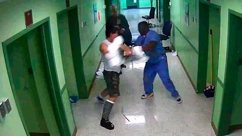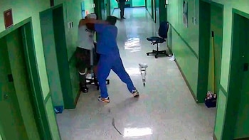 Vice salió minutos más tarde, con el rostro y la camiseta manchadas de sangre. En ese momento el joven recogió sus muletas e intentó golpear al enfermo, sin éxito. Otra vez, fue trasladado a otro cuarto.