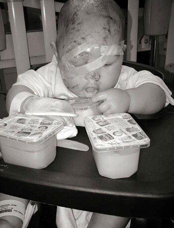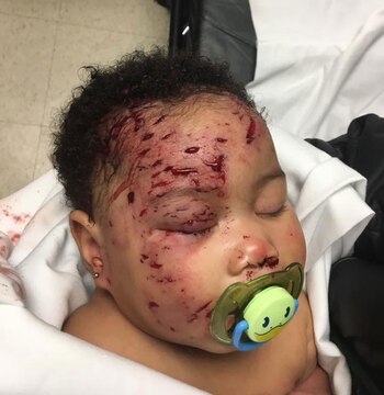 Su madre, Ashley Rodgers, estaba bañando al hermano mayor de la pequeña cuando escuchó un extraño sonido proveniente de la habitación de la menor. De inmediato, el llanto desgarrador. Cuando fue en su ayuda, vio un mapache saliendo del cuarto. Al ingresar, se desesperó. Journi estaba bañada en sangre. Creyó lo peor.