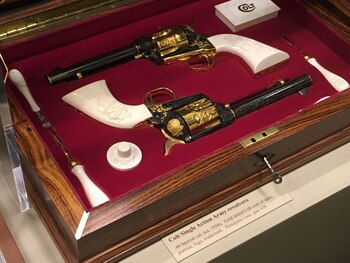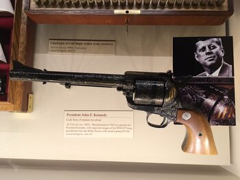 Pero la colección de Fairfax es la más importante. Incluye algunas "joyas" de enorme valor, como las tres escopetas conocidas como las "invencibles", fabricadas por los Parker Brothers con la máxima calidad y valuadas en 5.000.000 de dólares. O la carabina que perteneció a John Alden, uno de los pioneros del Mayflower. O el revolver Colt New Frontier calibre .45 fabricado para John Kennedy, pero que nunca le fue entregado porque antes fue asesinado.