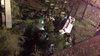 "Hay varios heridos ya que el autobús se desplomó por una ladera", dijo Chris Elliott, funcionario del condado de Baldwin, quien asistió al centro de coordinación tras el suceso. "Bomberos y policías están descendiendo con cuerdas hacia el área para poder ayudar a los heridos", agregó.