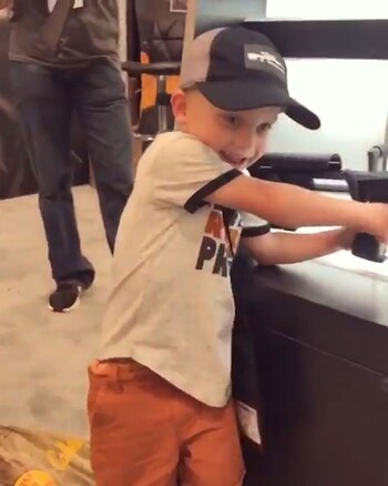 "¡Eres adorable!", comenta la mujer luego de realizar una brevísima entrevista de 38 segundos con Maverick, un niño de apenas cuatro años que estaba junto a su familia en un stand durante la Convención Anual de la Asociación Nacional del Rifle (NRA, por sus siglas en inglés) en Dallas.