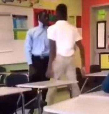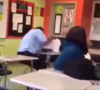 La agresión se desató después de que el estudiante golpeara con un puño al profesor en el pecho. Tras el golpe, el profesor empuja al alumno, desafiándolo a luchar.