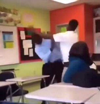Un impactante video mostró el momento en el que un profesor noqueó a un estudiante con una toma de lucha libre durante una pelea en medio de una clase.
