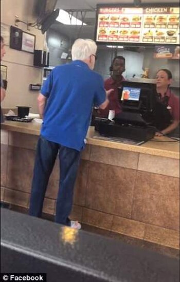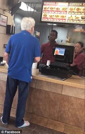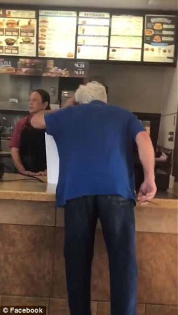 El episodio, grabado por una clienta en el restaurante de hamburguesas Jack in The Box, en el sureste de Houston, en Texas, ocurrió cuando el cliente se enojó luego de tener que esperar a que la empleada, de nombre María, verificara un cupón para una hamburguesa gratis.
