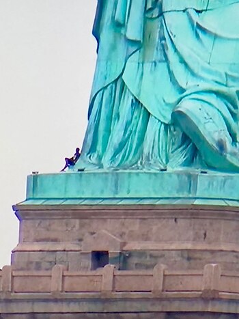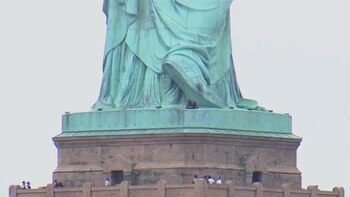 Un grupo de activistas contra la política migratoria del gobierno de Donald Trump realizó una protesta este miércoles en la Estatua de la Libertad en Nueva York y una mujer llegó a escalar parte del monumento generando una alerta de seguridad.