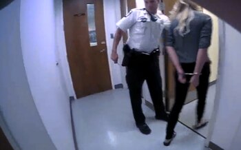 "Ella irá a prisión por lo que deberían irse a casa" le advierte una agente al personal de seguridad en una de las imágenes.