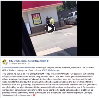 Lo contó así mismo: no fue un policía, sino el Departamento de Policía de Tallahassee el que terminó de afeitarlo.