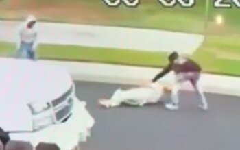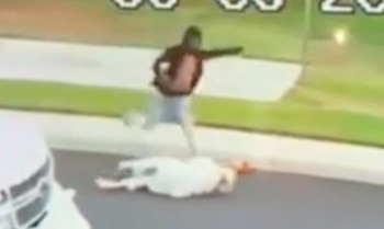 El agresor va por un costado, aparentemente lo escupe, se le acerca y hace algo con la mano, y los dos jóvenes se van dejándolo tendido en el suelo. Desaparecen brevemente por la izquierda de la imagen y el mismo que había cometido las agresiones regresa corriendo adonde yace el anciano, lo patea tres veces, lo escupe y se marcha.