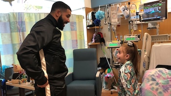 El artista la visitó tras ver un video de la niña bailando en los pasillos del hospital al ritmo de su canción "In My Feelings", que había inspirado un reto viral.