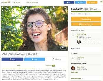 "El hecho de que mis lágrimas y mi profunda tristeza estén causadas por la muerte de alguien a quien nunca conocí personalmente ilustran el impacto que Claire tuvo en mí", escribió Annie Goodman en la cuenta de GoFundMe abierta para ayudarla a cubrir los gastos de su operación. "Vivo con un trastorno genético y me esfuerzo para ser el tipo de persona que ella me inspiró a ser".