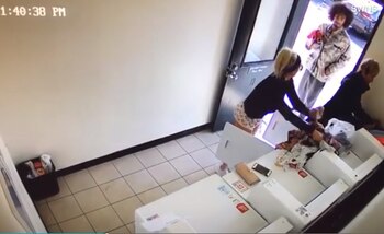 Lo último que muestran las imágenes es la conversación que mantiene con la despistada y pasiva señora que estaba junto a ella, a la que le cuenta lo que acababa de ocurrir. Tras esto, desaparece del objetivo abandonando su ropa sobre la máquina, para perseguir al chico, al que acusó de huir.