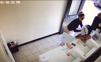 Gracias a la perspectiva de la cámara, la grabación mostró el momento exacto en el que el acosador entró al lugar. Al percatarse de su presencia, Haley Bray, incómoda, se coloca bien el pantalón del pijama, de estampado de "Minnie Mouse", pues se la había subido a la cintura al agacharse para sacar las prendas.