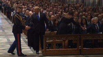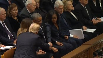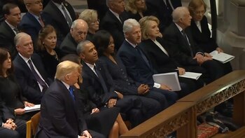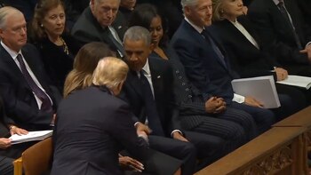 El presidente, Donald Trump, y su antecesor, Barack Obama (2009-2017), se dieron hoy la mano al comienzo del funeral del exmandatario George H. W. Bush (1989-1993), pero no hubo ninguna interacción entre el jefe de Estado y su rival en las elecciones de 2016, Hillary Clinton.