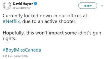 El director y escritor David Hayter tuiteó por la tarde: "Actualmente están bloqueando a nuestras oficinas debido a un tirador activo".