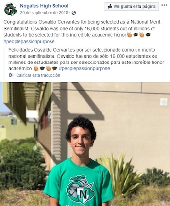 Osvaldo Cervantes tiene 17 años, es un joven atleta que está por terminar sus estudios en la preparatoria Nogales High School y ya fue aceptado en tres de las más importantes universidades de Estados Unidos, Yale, Harvard y Stanford, incluso una de estas universidades le ofreció una beca completa.