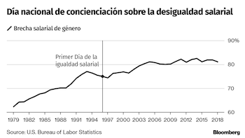 En 1996, el año en que el comité estableció por primera vez el "Día nacional de concienciación sobre la desigualdad salarial", las mujeres en Estados Unidos ganaban el 75 por ciento de lo que ingresaban los hombres. La proporción alcanzó el 80 por ciento en 2004 y se ha mantenido principalmente sin cambios desde entonces, según la Oficina de Estadísticas Laborales de Estados Unidos.