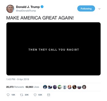 El texto, con la música de la película de fondo, dice: "Primero ellos te ignoran. Luego se ríen de ti. Luego te llaman racista. Donald J. Trump. Tu voto. Demuéstrales que están equivocados".