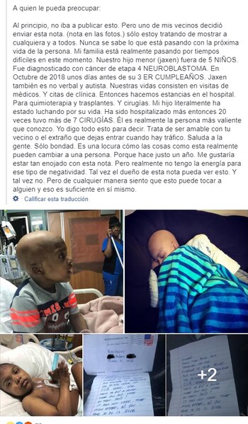 "Trata de ser amable con tu vecino o el extraño que dejas entrar cuando hay tráfico. Saluda a la gente. Solo da bondad. Es una locura cómo las cosas como esta realmente pueden cambiar a una persona. Porque hace justo un año yo me hubiera enojado mucho con esta nota. Pero ahora realmente no tengo la energía para ese tipo de negatividad. Tal vez el dueño de esta nota pueda ver esto. Y tal vez, no. Pero de cualquier manera siento que esto podría tocar a alguien y eso es suficiente en sí mismo", describió la mujer.