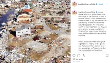 "Tengo un amigo que me dona ambulancias aéreas al puro costo, con pilotos y médicos, lo que significa que solo pago la gasolina. Ya tenemos las primeras misiones en la zona cero, la zona más dañada que hay y en la que se puede aterrizar, que es Sandy Point. Sin embargo, necesitamos recaudar fondos para seguir con la misión", declaró Ingrid Hoffmann en entrevista para Infobae.