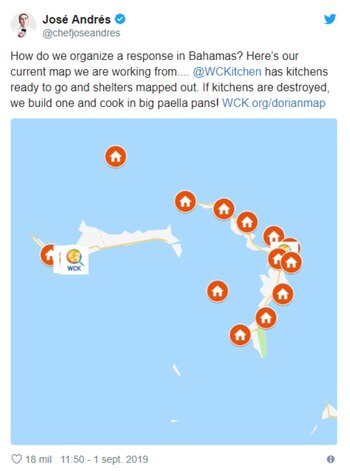 La famosa chef de Miami coordina los esfuerzos de rescate, cuyo objetivo es sacar de la zona de desastre a cualquier persona que se encuentre herida y trasladarlo al hospital de Nassau, en las Bahamas.