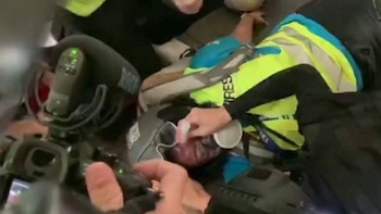 El video muestra a oficiales de policía que se retiran de un puente en Wan Chai que conduce a oficinas gubernamentales en el corazón de la ciudad. A los periodistas se les escuchó gritar “somos reporteros” antes de que se disparara. En la zona, manifestantes arrojaban botellas de plástico y otros objetos a la policía antidisturbios.