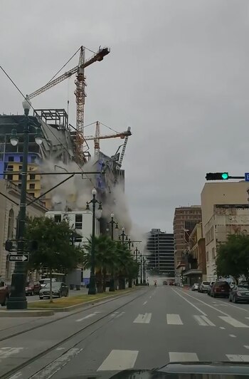 Un testigo capturó el momento en que el edificio se derrumbó y se lo entregó a la cadena WWL-TV, que lo difundió en su cuenta de Twitter. La escena muestra a gente corriendo para salvar sus vidas. La estructura, de hecho, bloquea toda la calle.