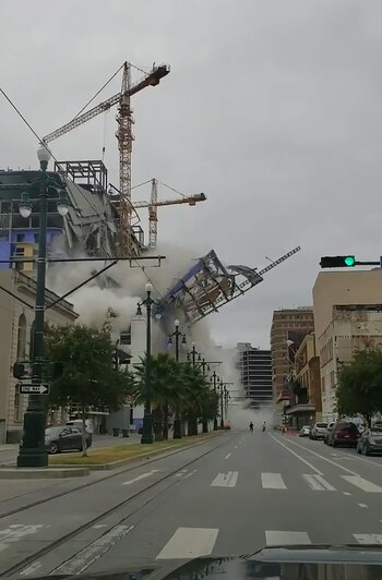 Según confirmaron las autoridades, el colapso ocurrió alrededor de las 9:30, hora local, cuando los pisos superiores del hotel y casino, de 18 plantas de altura, se derrumbaron sobre el resto del edificio, provocando el desplome de la fachada y de buena parte de la estructura interior sobre el centro de la ciudad, entre las calles de Canal y North Rampart. Los edificios que rodean el hotel fueron evacuados.