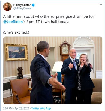 Hillary Clinton es la última gran figura demócrata en hacer público su respaldo a la candidatura de Biden, quien también cuenta con el apoyo de la senadora por Massachusetts, Elizabeth Warren, y el senador por Vermont, Bernie Sanders, dos de sus recientes rivales durante las primarias demócratas.