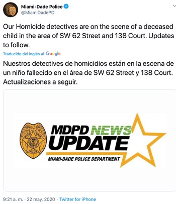 Las autoridades piden a quienes puedan tener información sobre este lamentable suceso que se comuniquen con el Departamento de Policía de Miami-Dade o llamen al 305-476-5423.