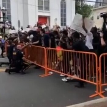 “Un momento realmente bello del que fui testigo”, comentó Amanda, una ciudadana de Nueva Jersey que captó en video cuando unos policías se arrodillaron frente a un grupo de manifestantes que protestaban contra el racismo en una nueva jornada de marchas por la muerte de George Floyd durante un arresto.