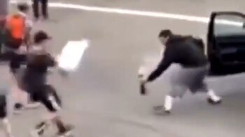 Manifestantes de una protesta contra el racismo evitaron que un sujeto deje unos explosivos en medio de la calle y los arrojaron de regreso a su auto, donde detonaron causando un gran estruendo.