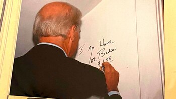 El demócrata ya había escrito un mensaje similar en las paredes de su casa previo a las elecciones de 2008 cuando era candidato a la vicepresidencia como compañero de fórmula de Barack Obama, quien se terminó imponiendo frente a John McCain.