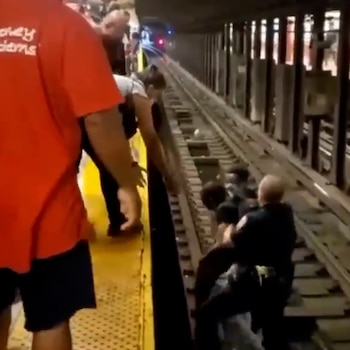 Un policía y un pasajero salvaron a una persona que cayó inconsciente a las vías de la estación de metro del Bronx, en Nueva York.