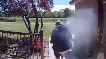 Momentos antes, estuvo intentando forzar la puerta de la casa en el condado de Shelby donde vive su ex novia. Le pedía a la mujer que salga, y se escuchan voces desde el interior ordenándole que se vaya, pero Rayl mantiene su intento de entrar.
