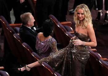 Hay que recordar que la intérprete obtuvo el galardón de la Academia en 2013 por su actuación en El lado luminoso de la vida y, al subir al escenario para recibir la estatuilla, se tropezó y debió ser asistida por Bradley Cooper, su compañero de elenco. Un año más tarde, cuando volvió a ser nominada como mejor actriz de reparto por Escándalo americano, se volvió a tropezar, esta vez en la alfombra roja, y cayó al piso.