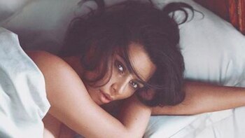 Se exhibió ante sus millones de seguidores con una pequeñas bragas mientras cubría su busto con sus brazos mientras posaba en el baño de su habitación.