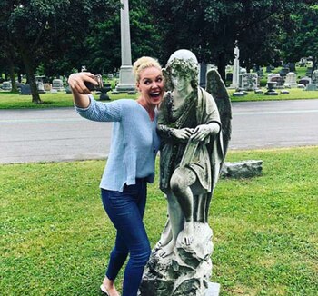 Katherine Heigl tuvo que salir a pedir disculpas por posar en unas divertidas selfies en el cementerio mientras visitaba la tumba de su hermano en Buffalo, Nueva York.